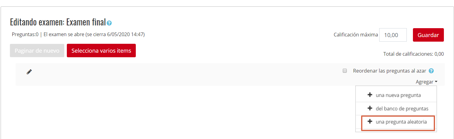 - Una pregunta aleatoria, que permitirá crear examen aleatorio.