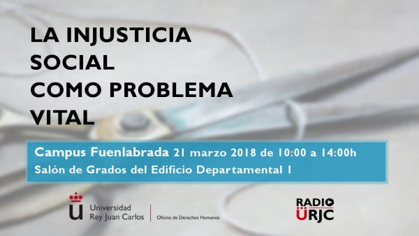 Consecuencia de las numerosas situaciones injustificables que se dan actualmente en el día a día de la sociedad española, la Oficina de Derechos Humanos de la URJC junto con RADIO URJC, hemos organizado una jornada denominada LA INJUSTICIA SOCIAL COMO PROBLEMA VITAL, en la que se tratarán distintas temáticas de interés social.