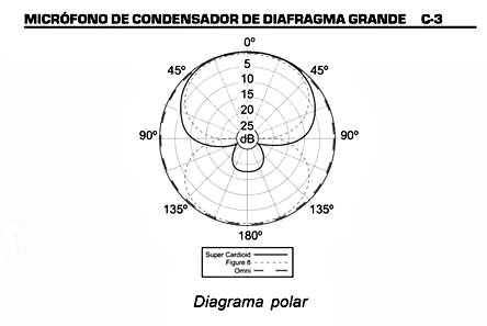 El C-3 es un micrófono de condensador con diafragma doble que permite tres patrones direccionales: cardioide, bidireccional y omni.